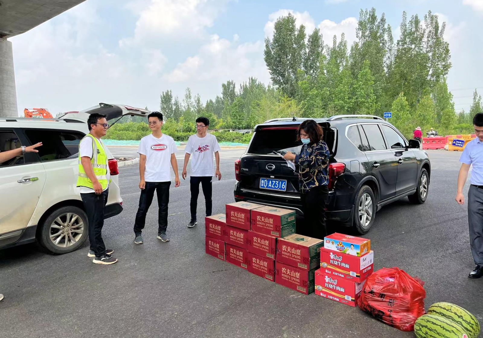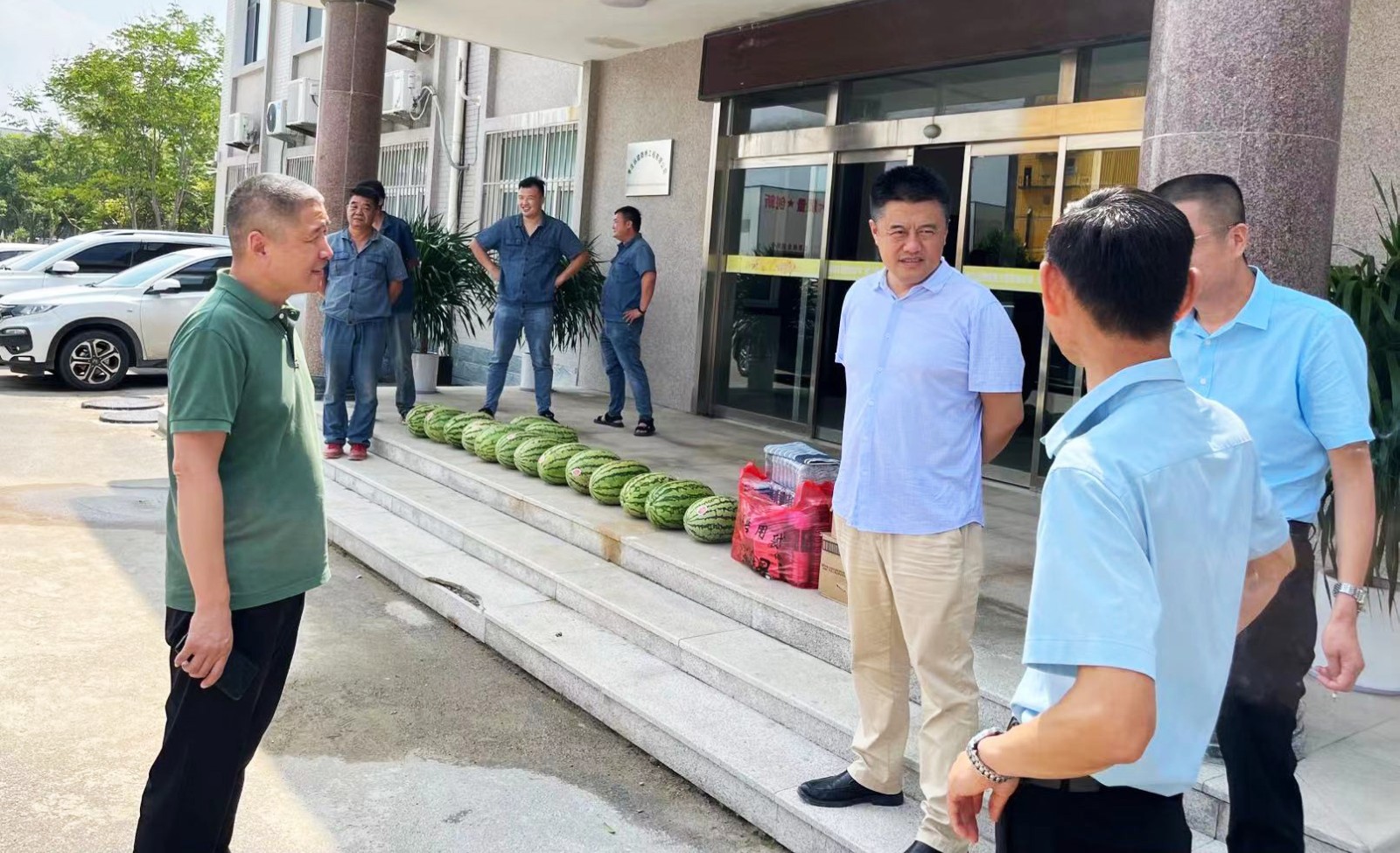 慰問組一行先后來到老城區城市道路提升改造工程、光明大道提升改造工程、新城世紀大道工程、鳳凰綠道提升工程、祁連山南延工程、龜山公園生態提升工程二期等各個在建工程及生產現場,為他們送去了西瓜、方便面、火腿腸及毛巾、肥皂、花露水、藿香正氣液等防暑降溫用品。每到一處,朱總都前往施工現場了解施工情況,與項目經理和施工員進行交談,要求各項目負責人在搶工期、抓質量中確保安全生產和文明施工。同時更要合理安排好工作、飲食和休息時間,切實做好高溫期間的防暑降溫工作,確保公司各項工作有條不紊地進行。