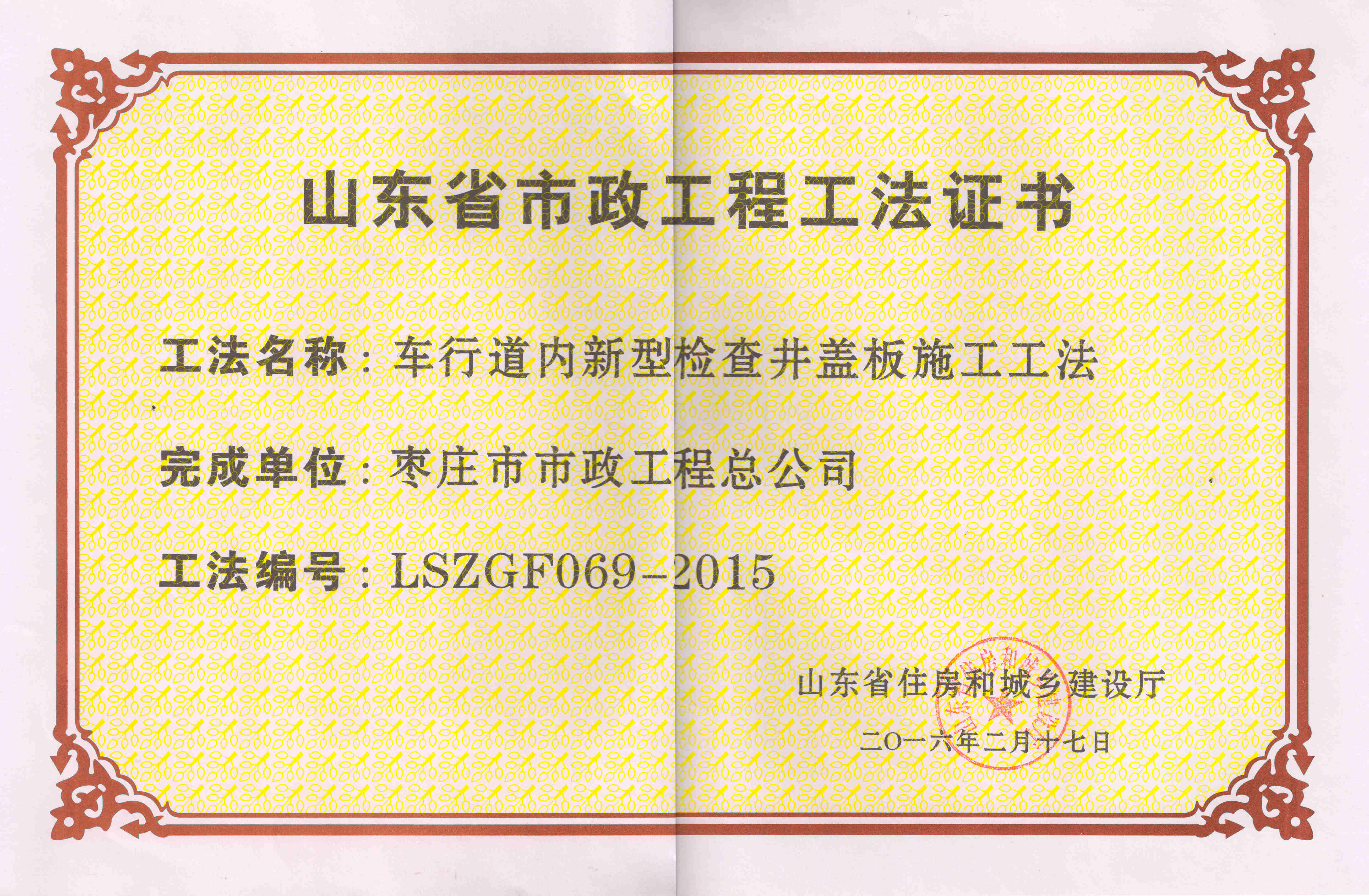 近日從山東省市政協會獲悉,我公司于2015年11月申報的“車行道內新型檢查井蓋板施工工法”被山東省住房和城鄉建設廳批準為省市政工程工法。