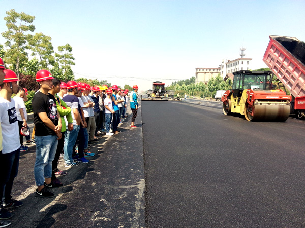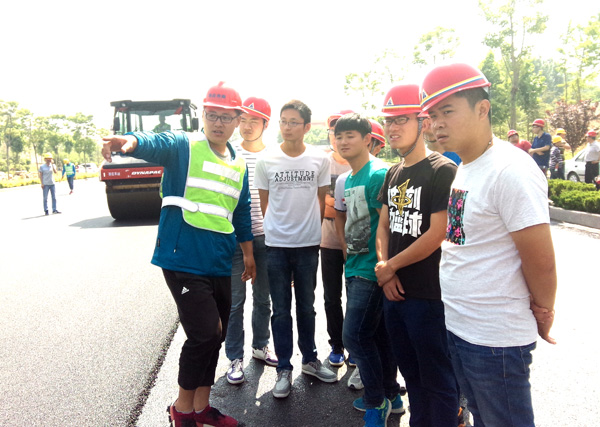 我公司作為棗莊學院教學實踐基地,承擔了棗莊學院相關專業(yè)教學實踐活動相關職能。為在校生提供實地教學觀摩和講解,是我公司的一項重要社會職能。本次赴我公司學習觀摩的學生,均為棗莊學院城市與建筑學院2013級土木工程專業(yè)在校生。師生一行先后參觀了遠建路橋分公司路面材料生產現場和路橋一分公司匯泉路項目瀝青攤鋪現場。